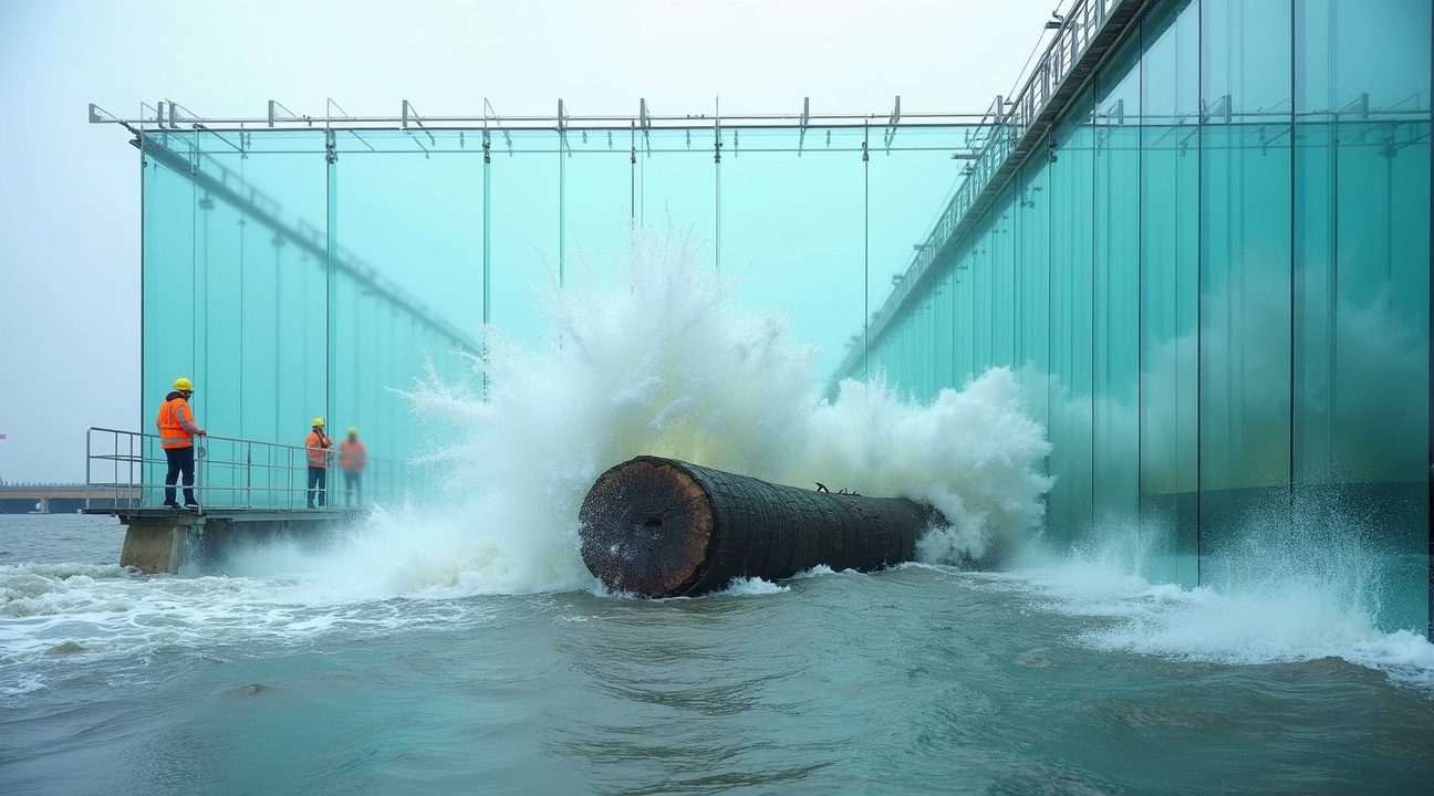 The testing facility subjected a full-scale section of the glass barrier to scenarios that mimic nature’s most destructive moments. Engineers watched as waves reaching 0.5 meters high crashed repeatedly against the transparent surface, simulating the kind of storm surge that has historically breached traditional sea walls. However, the most dramatic test involved launching a massive 6-meter-long tree trunk weighing 800 kilograms directly at the barrier.