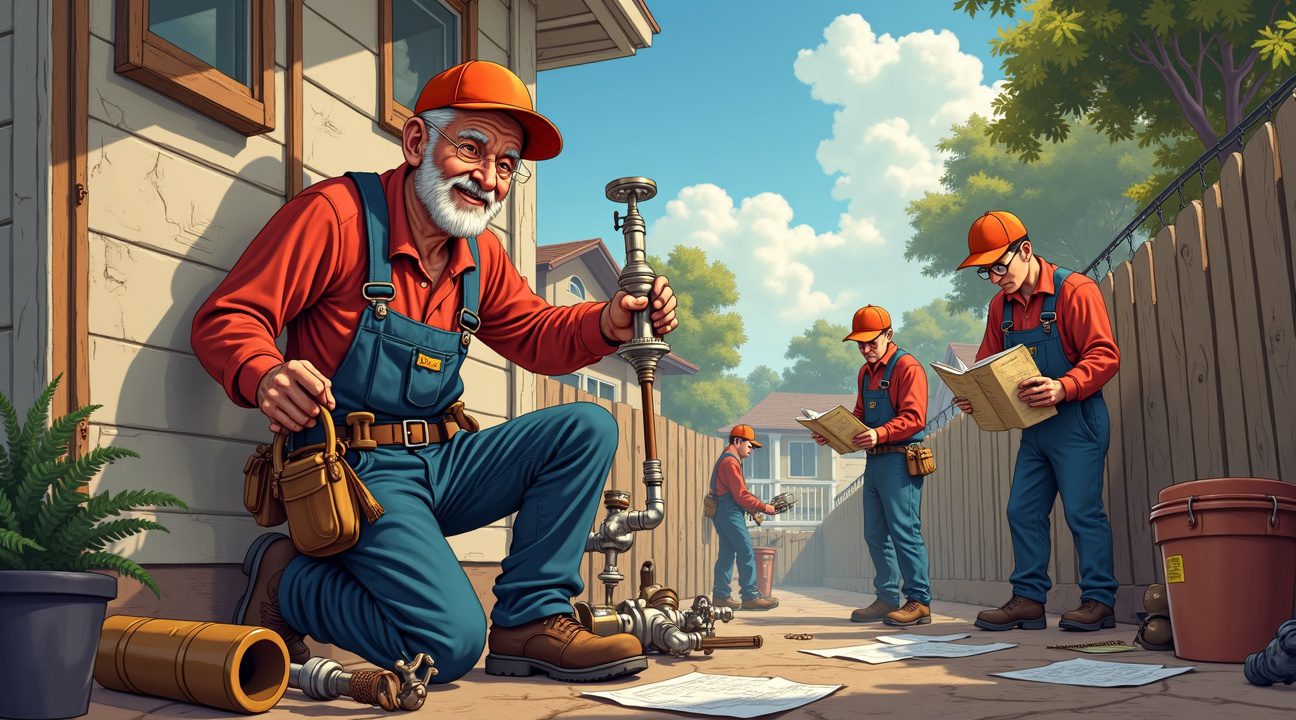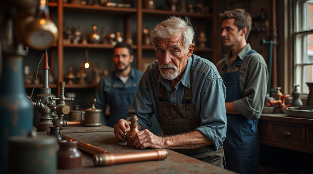 • He continues to perform hands-on work, directly handling plumbing tasks rather than assuming a ceremonial or supervisory role.