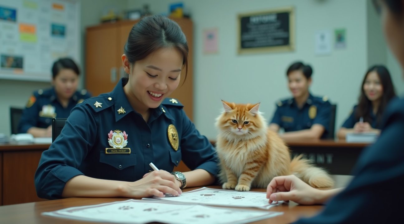 Officer Da Parinda Pakeesuk transformed what could have been a routine incident report into an internet sensation when she shared the cat arrest story on Facebook. Her post included photos of the entire booking process, complete with the cat’s mugshot and official documentation. The images showed the feline suspect being processed just like any human criminal, creating an amusing contrast that caught the attention of social media users across the globe.